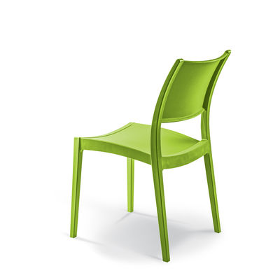 Gas injection polyprop chair with solid seat and back. Stackable 8 high. 3 year UV warranty.