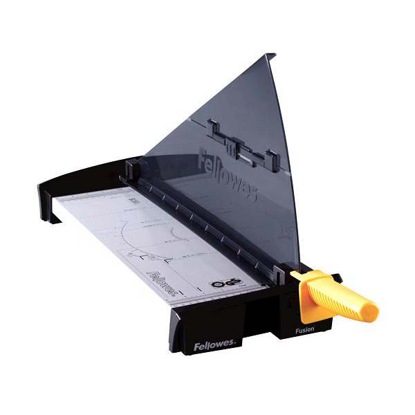 Full size SafeCutâ„¢ safety shield protects user during cutting process Quality stainless steel blade cuts up to 10 sheets at one time Foldable pre-assembled SafeCutâ„¢ Guard makes set-up and storage quick, easy, and safe Maximum 455mm cutting width; soli