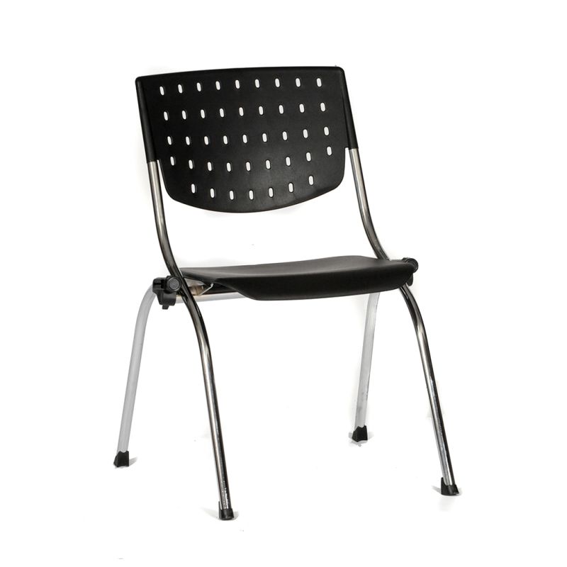 Black Plastic perforated Back with solid Plastic Seat Black Powder Coated Frame Standard without Arms No Option Interlinking Seats Stackable to approximately 18