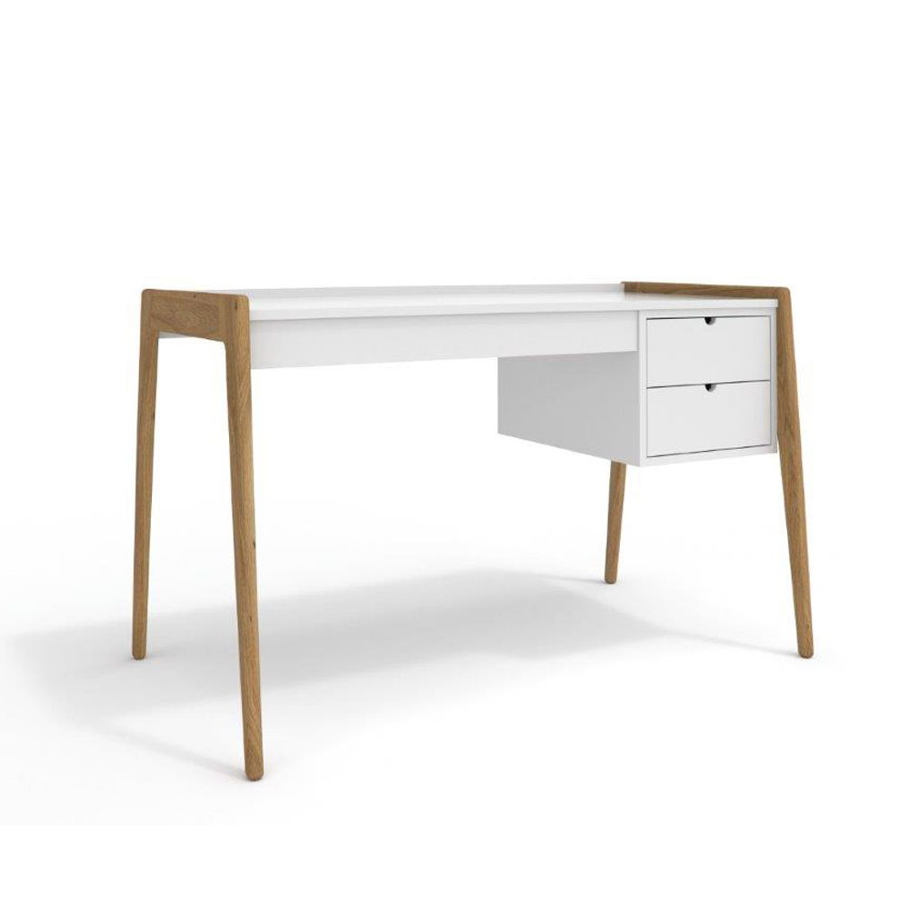 Size: 1350w x 700d 16mm White Duco Top Wood Base: Solid Oak Legs