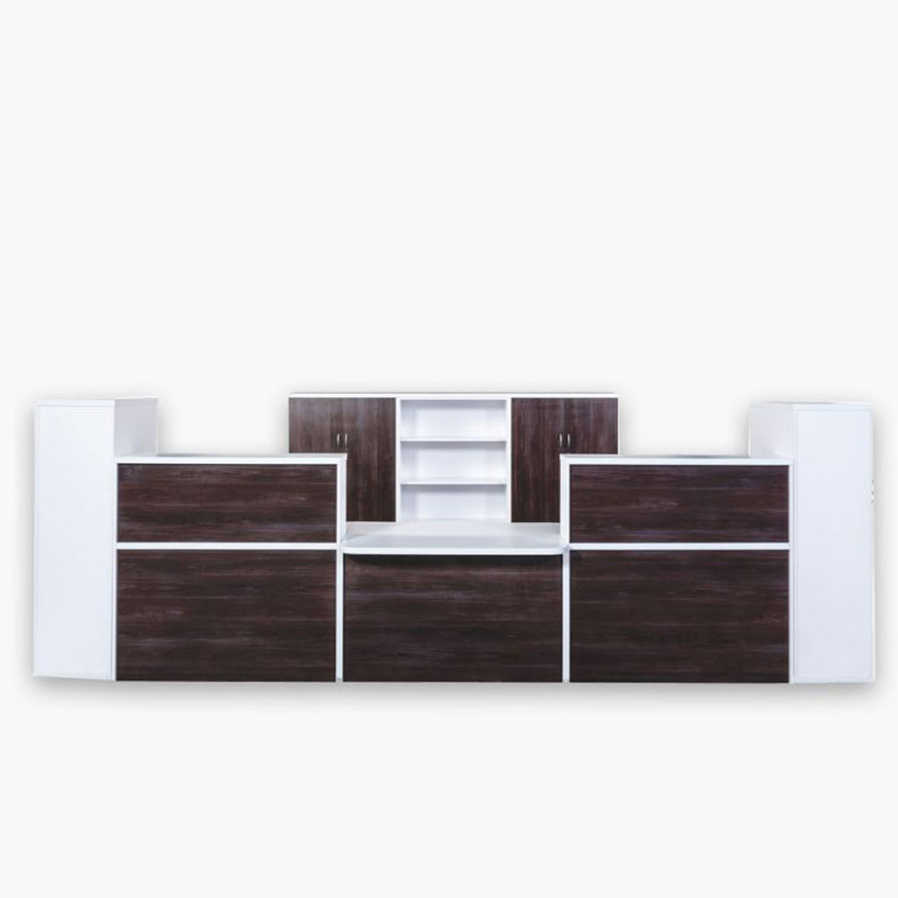 Reception Counter (Melamine) with Desk Height Pedestal & Sliding Door Credenza