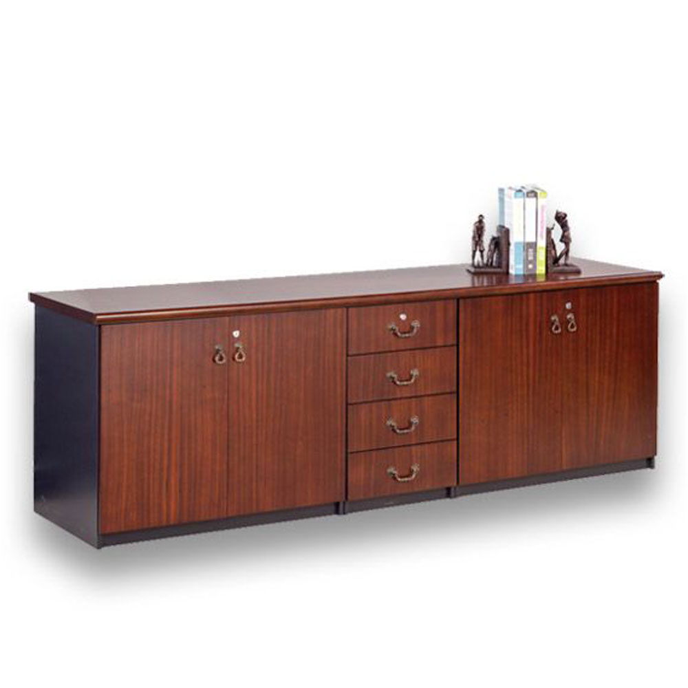 2400w x 450d x 900h Veneer Carcass and MDF painted Door Fronts Consists of Open Shelving and 4 Hinge Doors – Lockable Available in: – Dark, Antique Mahogany Veneer – Light, Medium and Dark Cherry Veneer – MDF Duco Colours in Standard Black or Storm Grey,