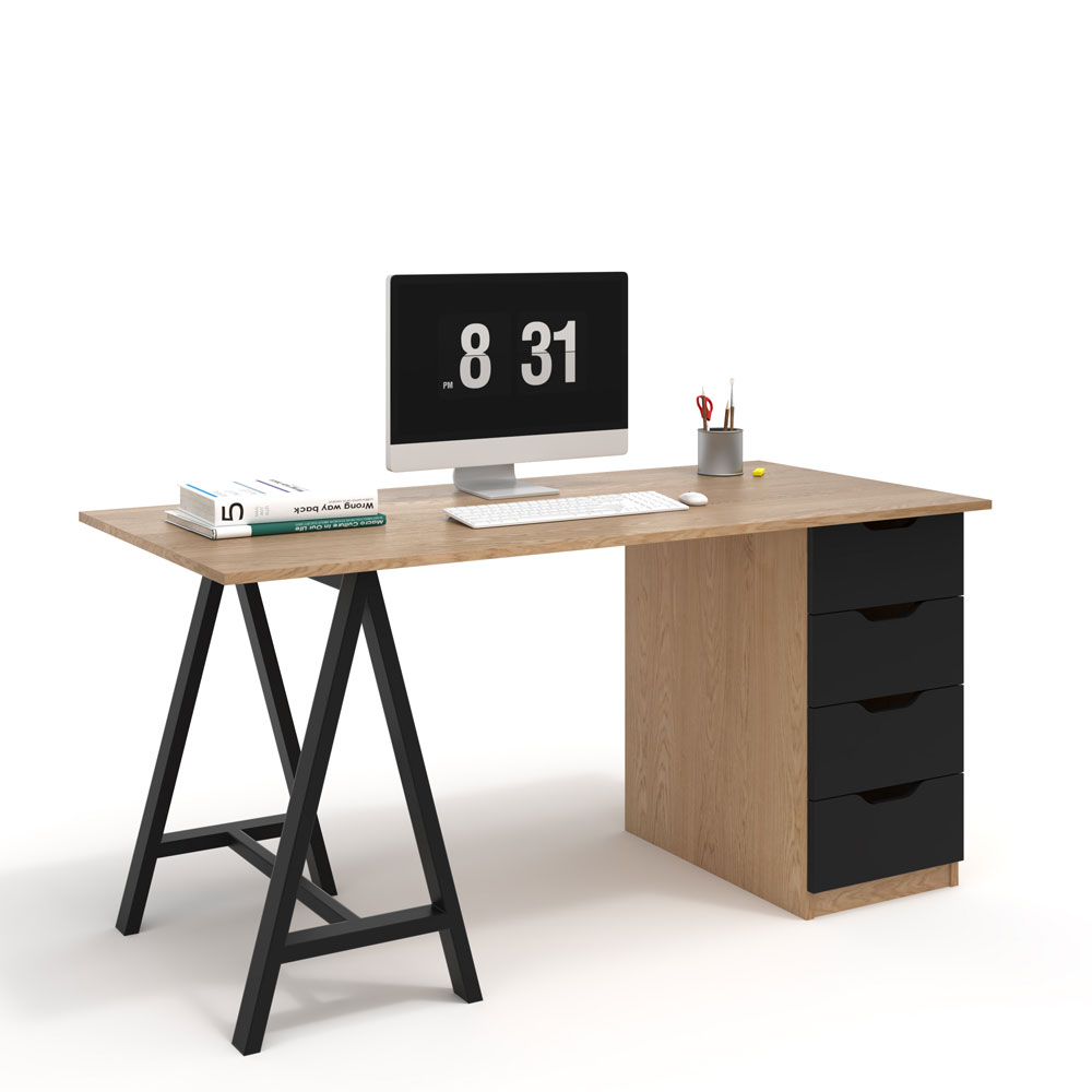 1350w x 700d 16mm Melamine Top 4 Drawer Pedestal 25 x 50mm Leg