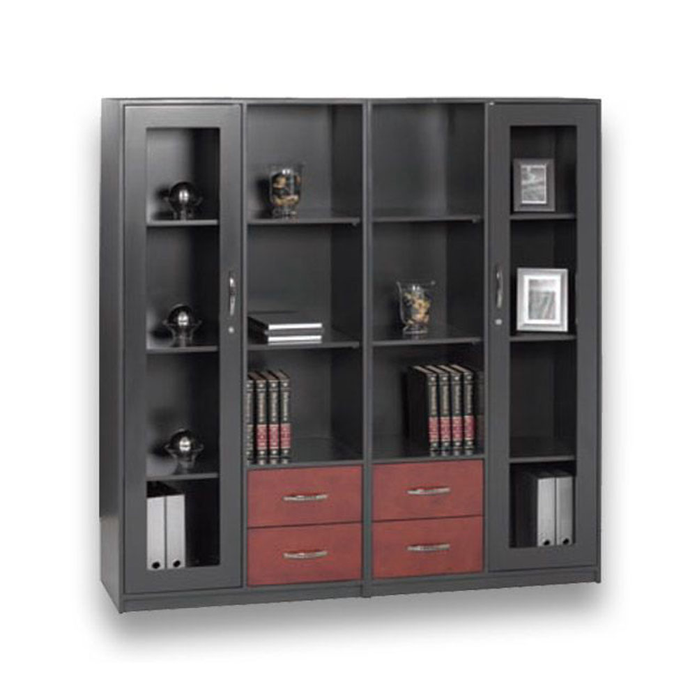 2 x 1800h x 900w x 450d Hinge Glass door and open bookcase / 2 Drawer units