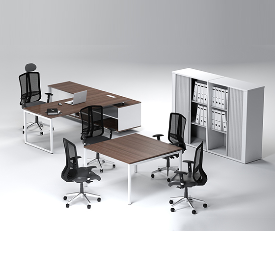 6 Way face to face with Open Combination Pedestal + Aluminium Frame Screen