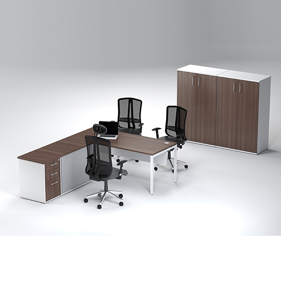 2 Way face to face with Open Combination Pedestal + Aluminium Frame Screen